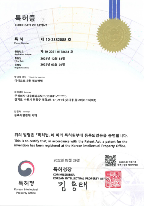 Patent for Microneedle Fabrication Method